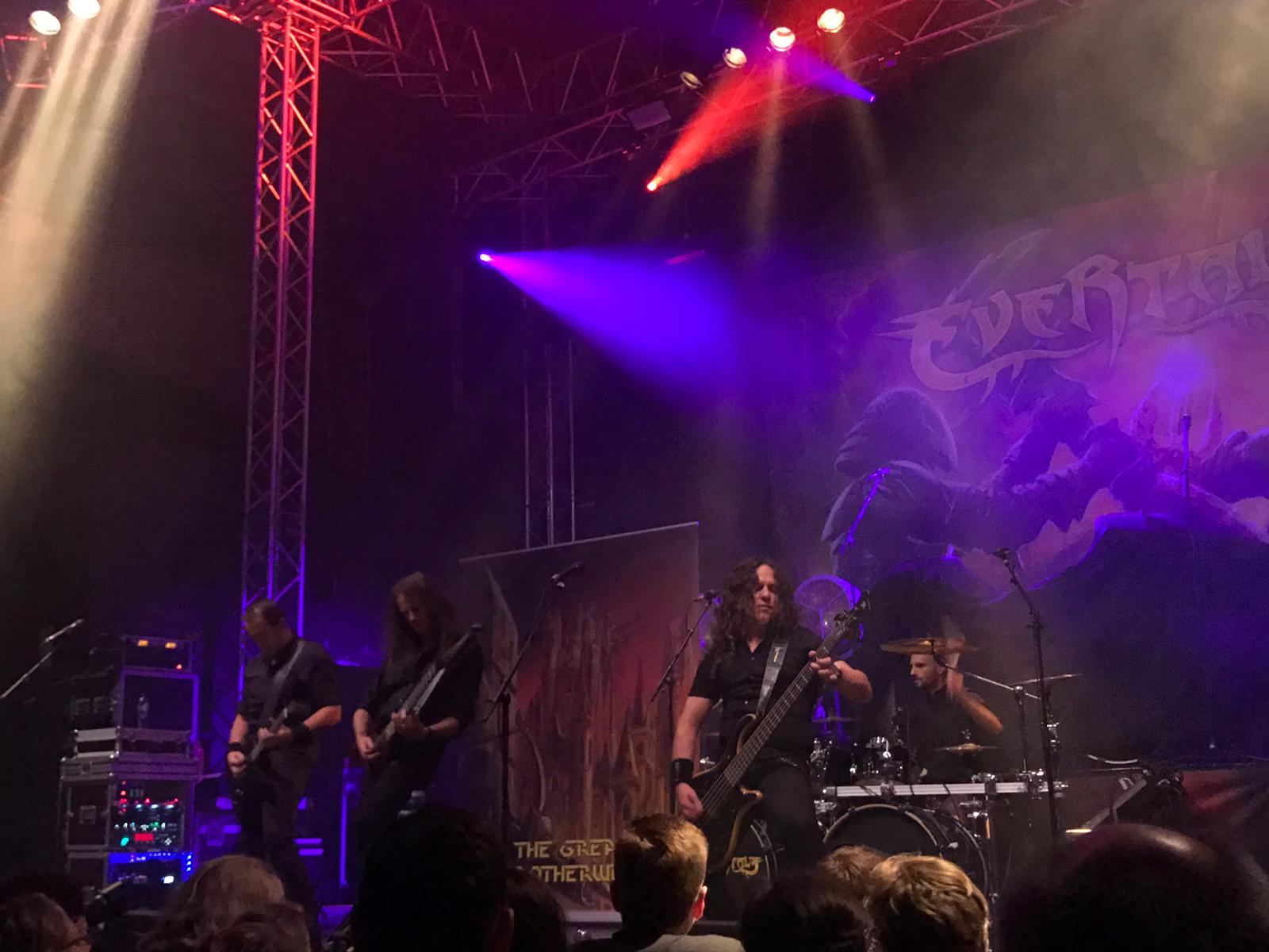 Viel zu schnell ging der Auftritt vorbei, und nachdem MoonSun unter lautem Applaus die Bühne verließ, wartete im Hintergrund schon die Band Evertale darauf, uns ihr Können präsentieren zu können. Die ersten Klänge des Intros erklangen, die Band stürmte die Bühne und übertrug die Energie, die Ihren Liedern innewohnte, sofort auf das Publikum. Sänger, Gitarristen und Schlagzeuger waren der Spaß bei Ihrem Auftritt ins Gesicht geschrieben und man merkte ihnen die Freude an.