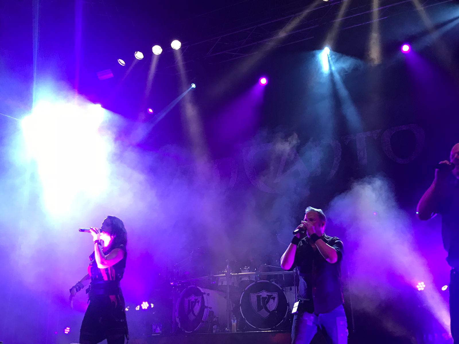 Doch auch hier fand der Auftritt ein Ende und die Stimmung im Publikum wurde von Minute zu Minute erwartungsvoller. Erste RAKKATAKKA MOTHERFUCKER Rufe kündigten an, was kommen sollte: Das Intro erklang, und nacheinander betraten die Barden von Van Canto die Bühne. Der Funke sprang direkt über und jeder Song, sei es alt oder neu, wurde frenetisch mitgesungen. Pommesgabeln wurden in die Luft gereckt, Köpfe mit mal mehr, mal weniger langem Haar wild durch die Luft gewirbelt und manch einer suchte nach einiger Zeit seine verloren gegangene Stimme. Dies war nicht nur dem Mitsingen jeder einzelnen Strophe der Lieder geschuldet, es wurden nach jedem Lied als Dank der Darbietung von dem Publikum das wohlbekannte RAKKATAKKA MOTHERFUCKER angestimmt, was den Auftritt der Band um einige Minuten in die Länge zog. Aber es kam, wie es kommen musste: das Ende des Auftrittes nahte, und nachdem die letzten Klänge des Outros verklungen waren, begab sich die Gilde nun auf den Weg an den Merchstand, wo man noch die Gelegenheit nutze, um mit den Bands ins Gespräch zu kommen und Ihnen für Ihre Auftritte zu danken. Es wurde gemeinsam etwas getrunken, gelacht und viel erzählt.