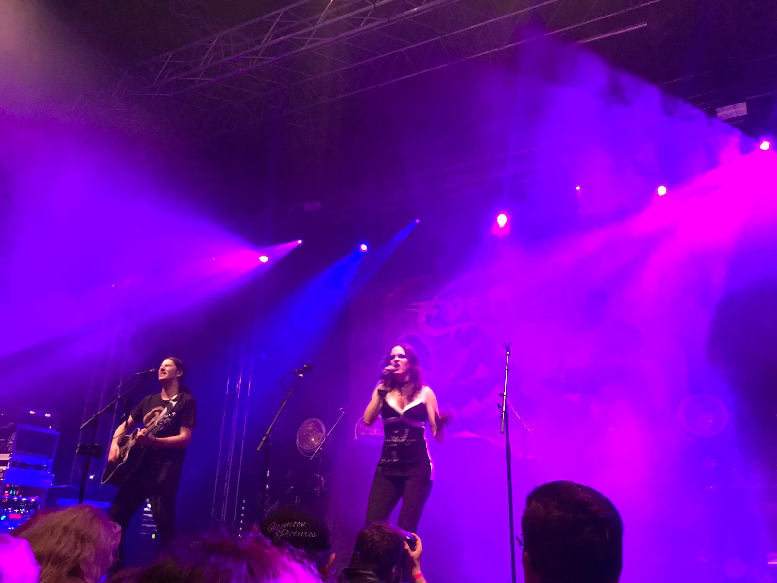 Gerade rechtzeitig, denn schon alsbald erklangen die Stimmen der ersten Band MoonSun. Wie schon in Vosselaar konnte Sängerin Susanne und Gitarrist Thomas die nun prall gefüllte Halle mit ihrer Art zu musizieren verzaubern. Sogar wurde an jenem Abend der Name eines Liedes spontan umbenannt, was der guten Laune der Auftretenden Ausdruck verlieh.